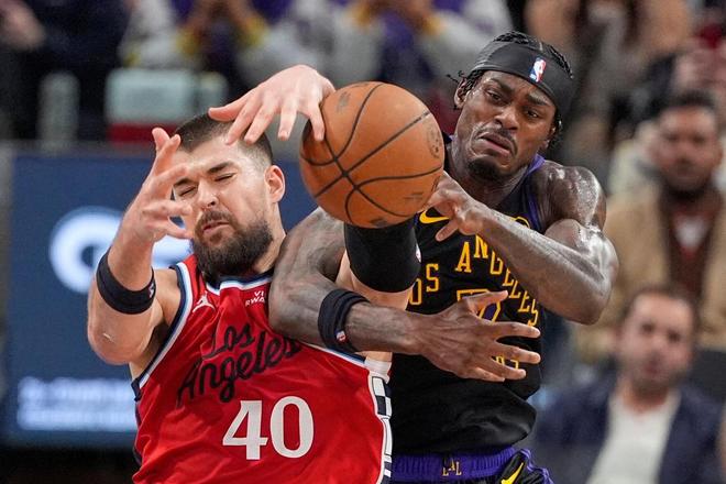 邓恩联手哈登连续抢断反击得分,詹姆斯、东契奇各有不断失误。快船得以将分差扩大至19分,艾顿勾手命中为湖人打破僵局。半场打完,湖人落后17分。